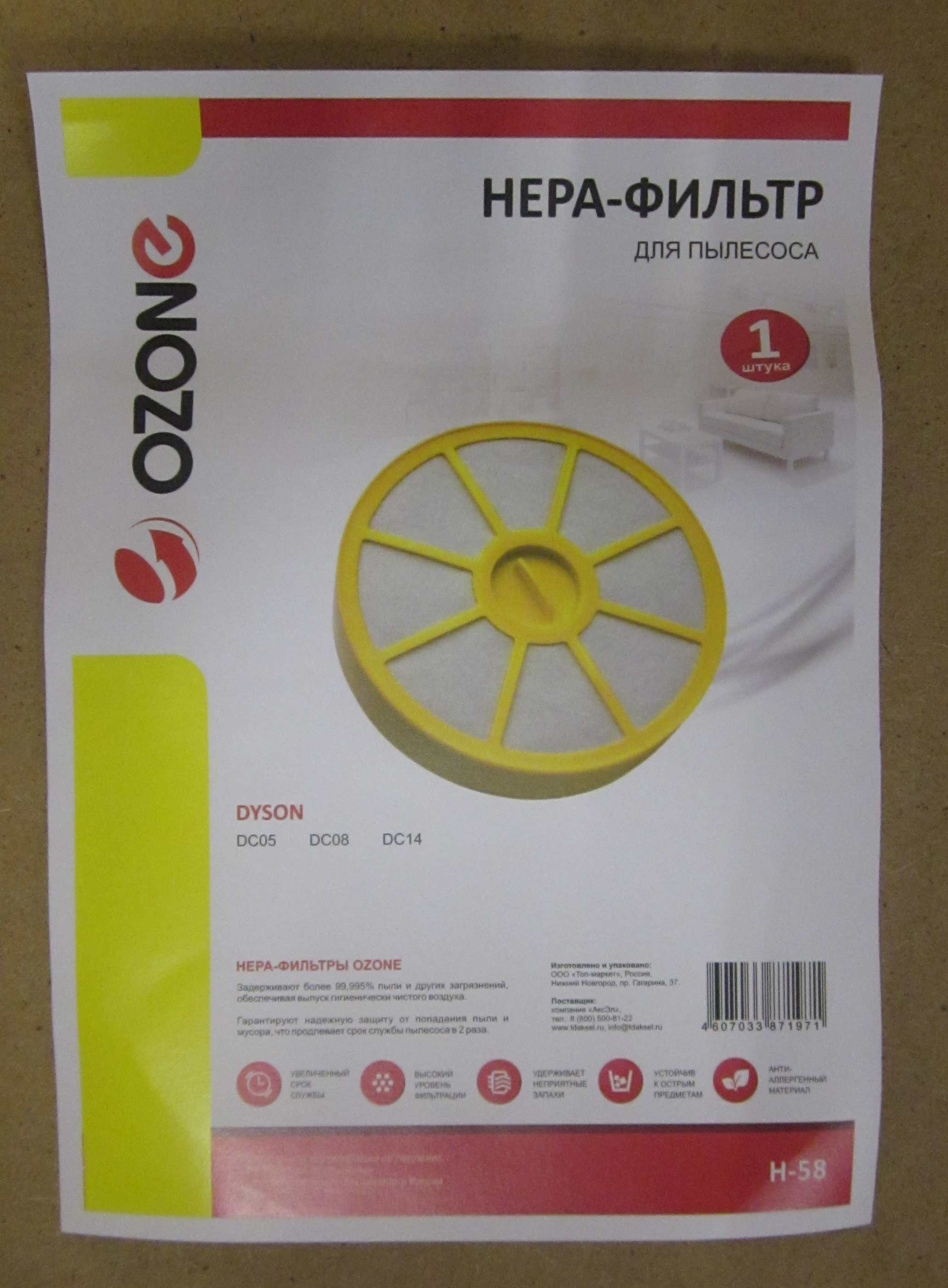 ОписаниеHEPA фильтр для пылесоса Дайсон, 1 шт., многоразовый моющийся, бренд: OZONE H-58