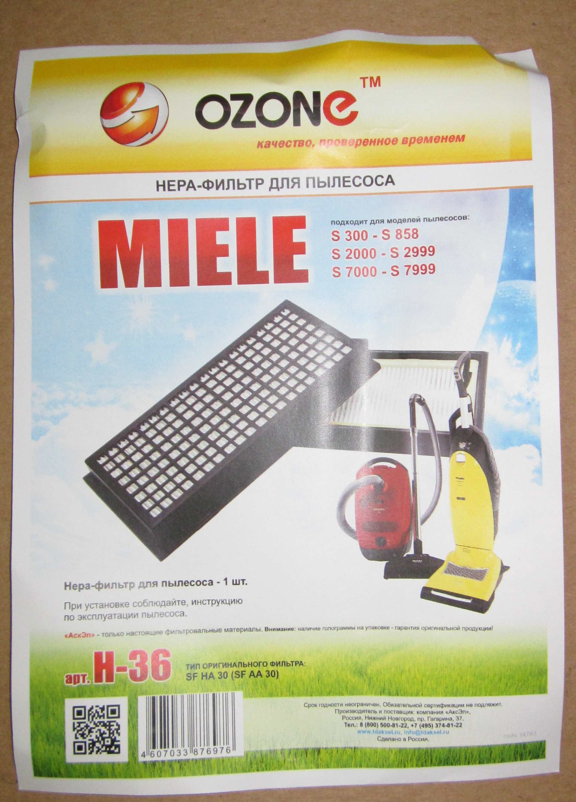 ОписаниеOZONE microne H-36 НЕРА-фильтр для пылесоса Miele S 300 - S 858, S 2000 - S 2999, S 7000 - S 7999 тип SF HA 30 (SF AA 30)