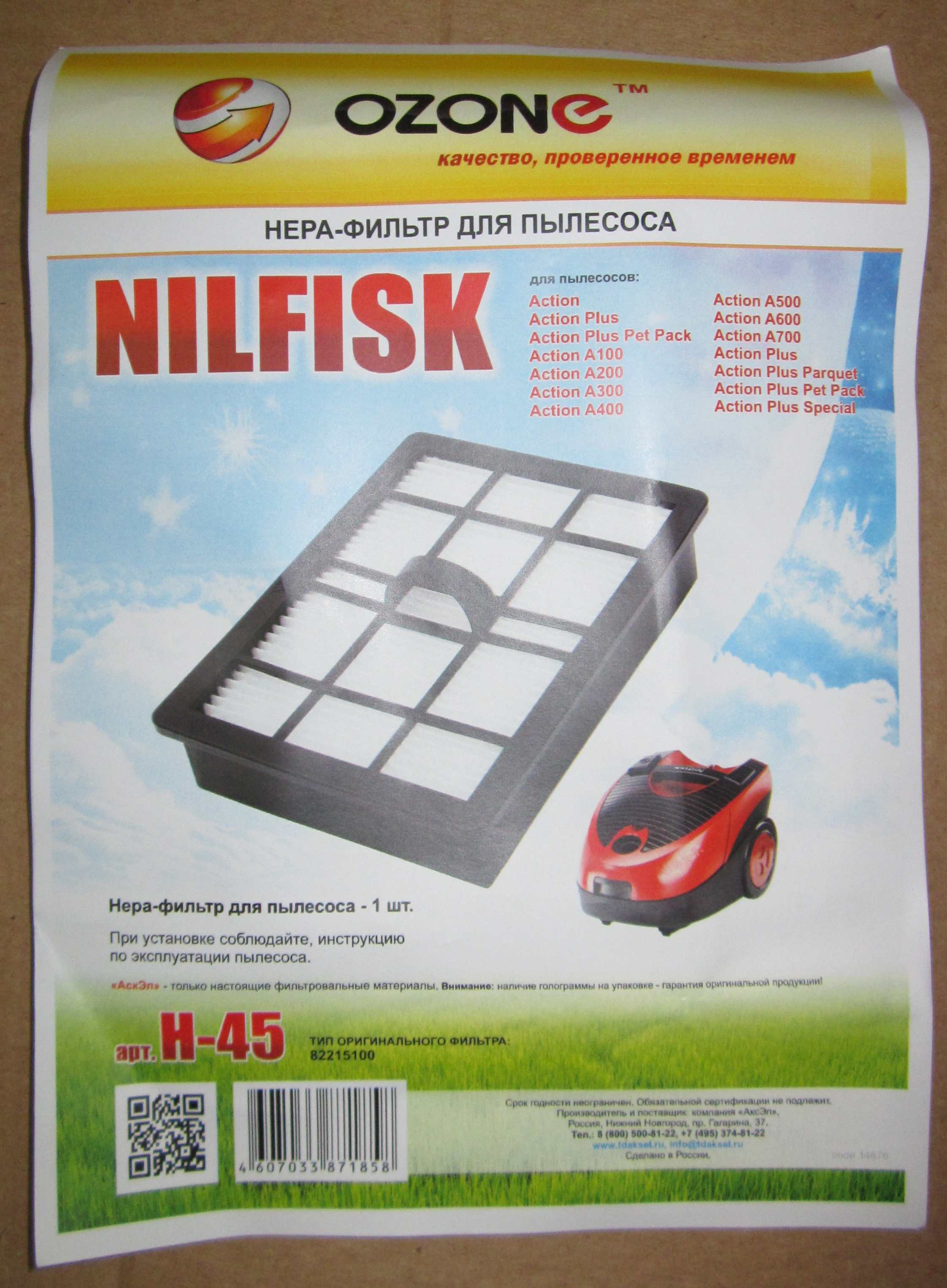 ОписаниеH-45 HEPA-фильтр Ozone целлюлозный для пылесоса NILFISK