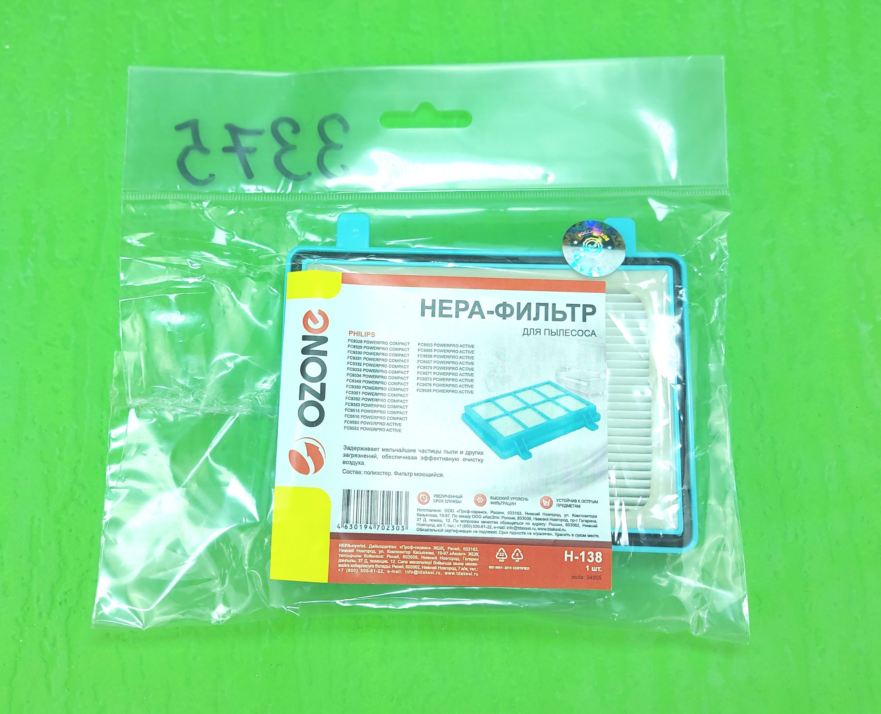 Фильтр HEPA для пылесоса PHILIPS моющийся (OZONE H-138) № 00000003375