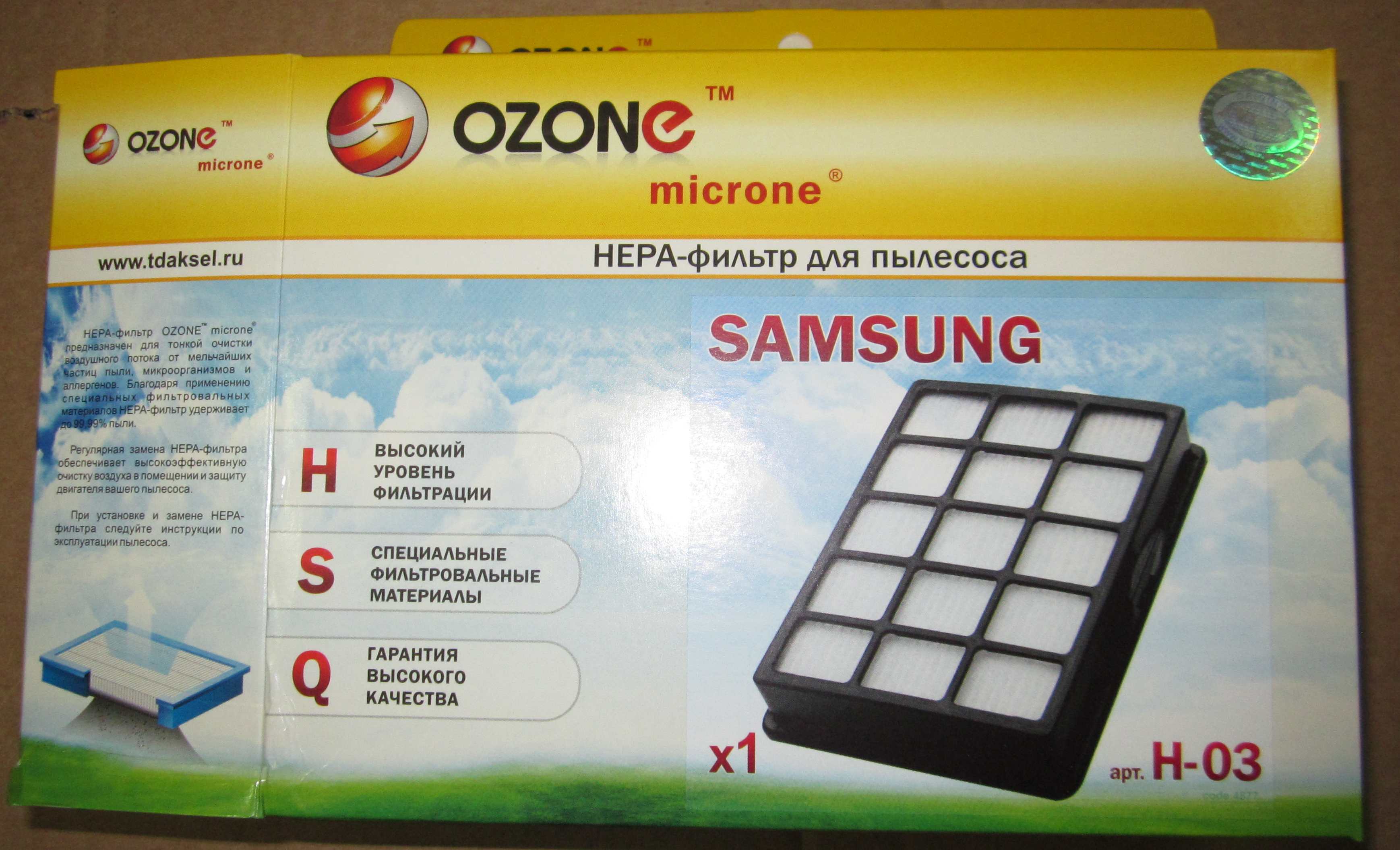 ОписаниеH-03 HEPA-фильтр Ozone целлюлозный для пылесоса.
