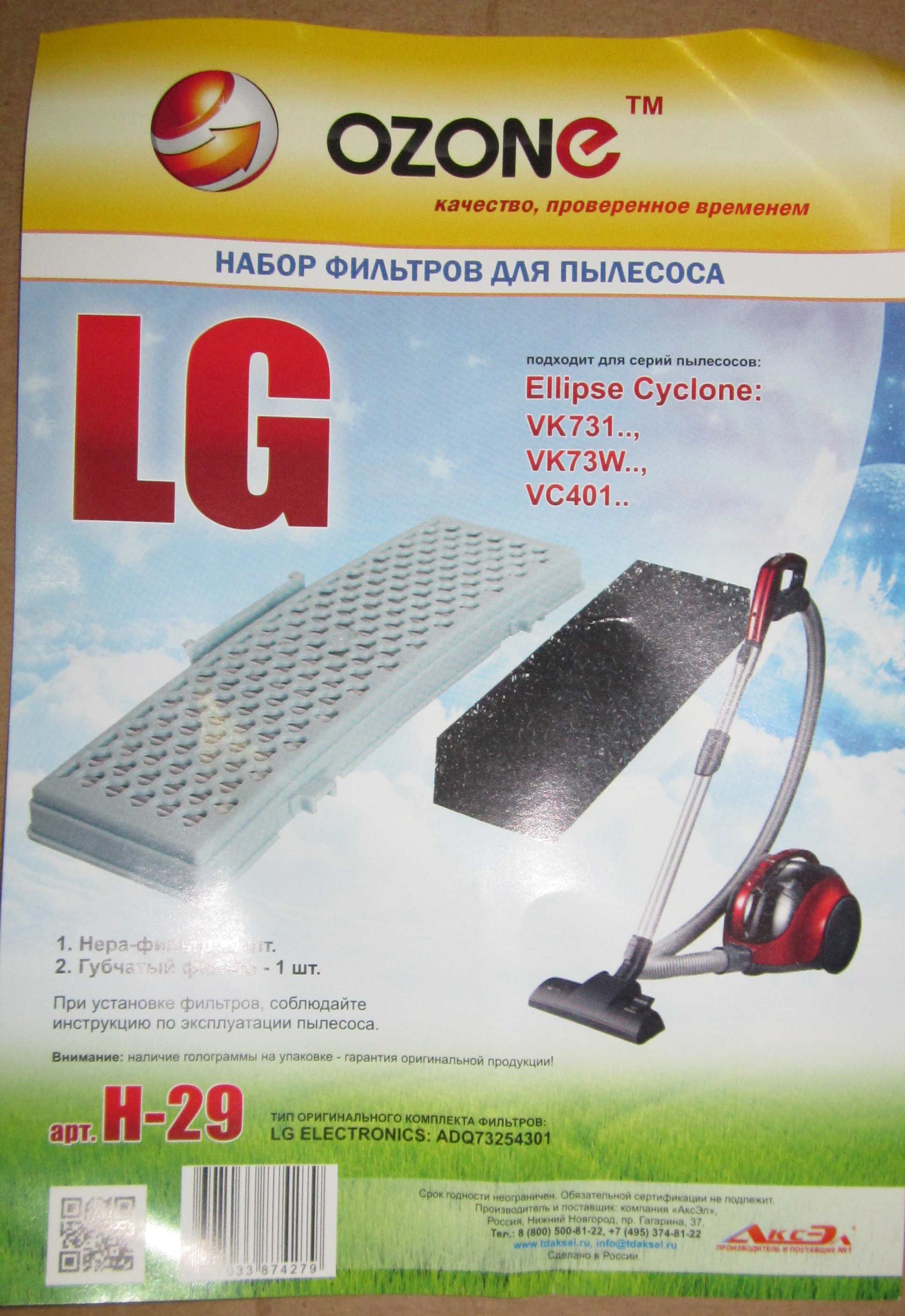 Комплект фильтров для пылесоса LG (OZONE H-29 вз. ADQ73254301) № 00-00013529