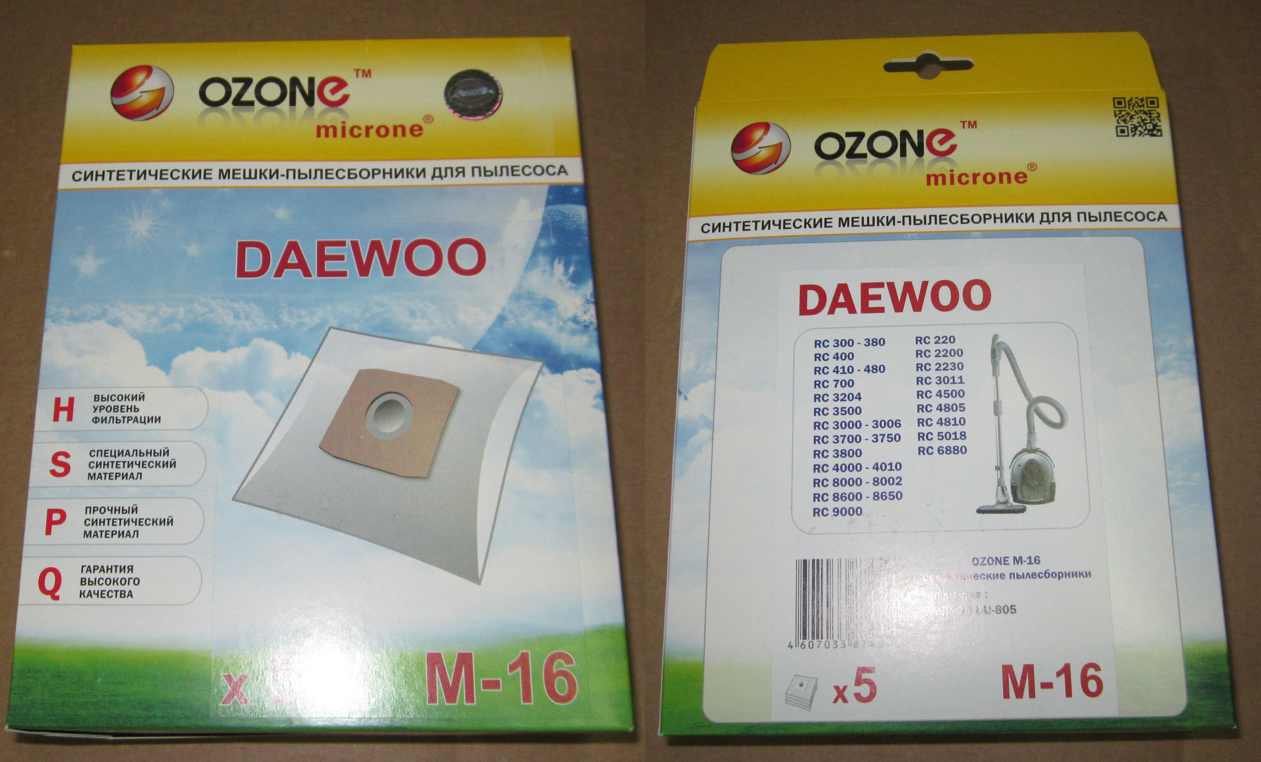 Пылесборники OZONE microne M-16 для пылесоса DAEWOO синтетические (5 шт.) № 00-00013467