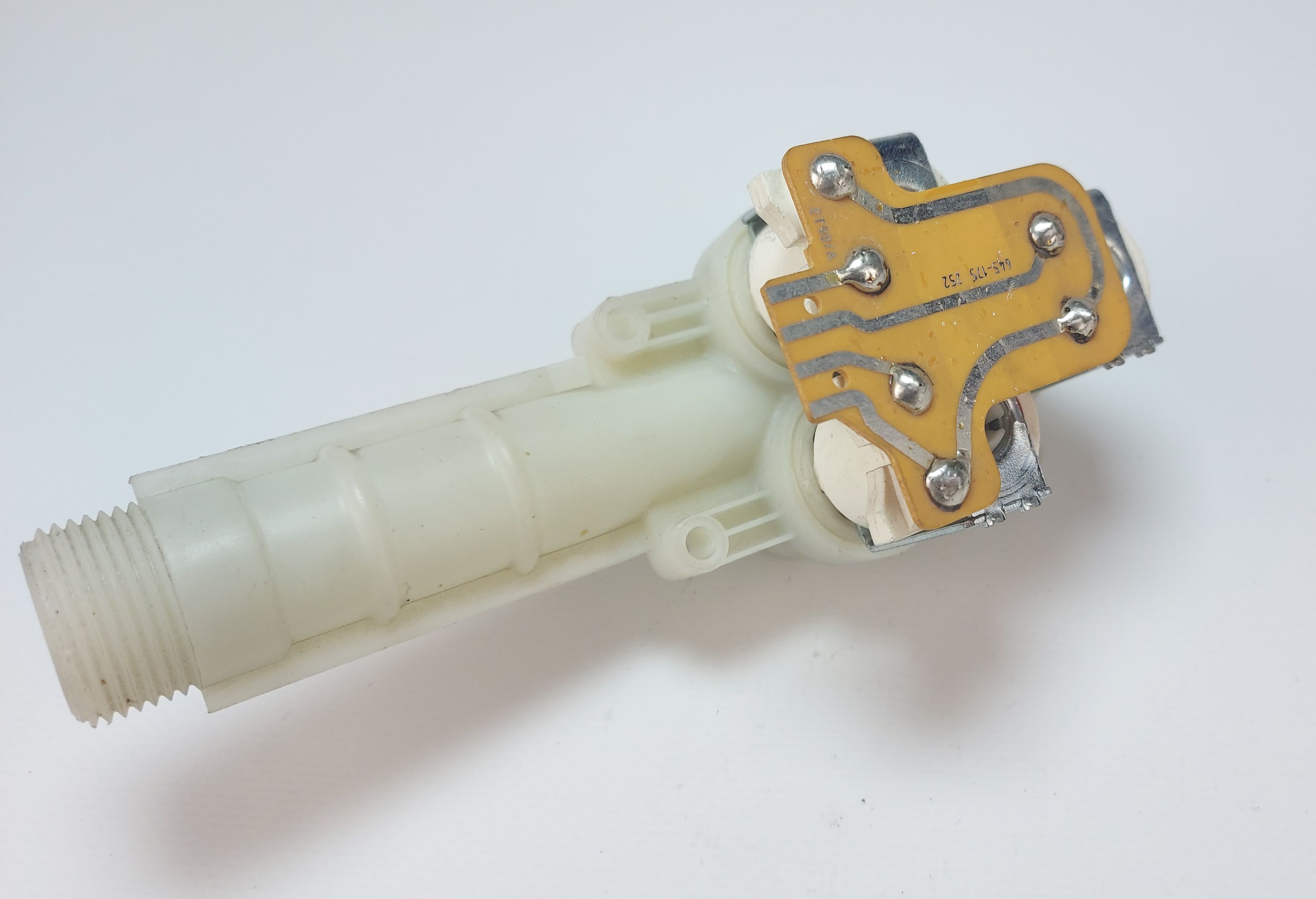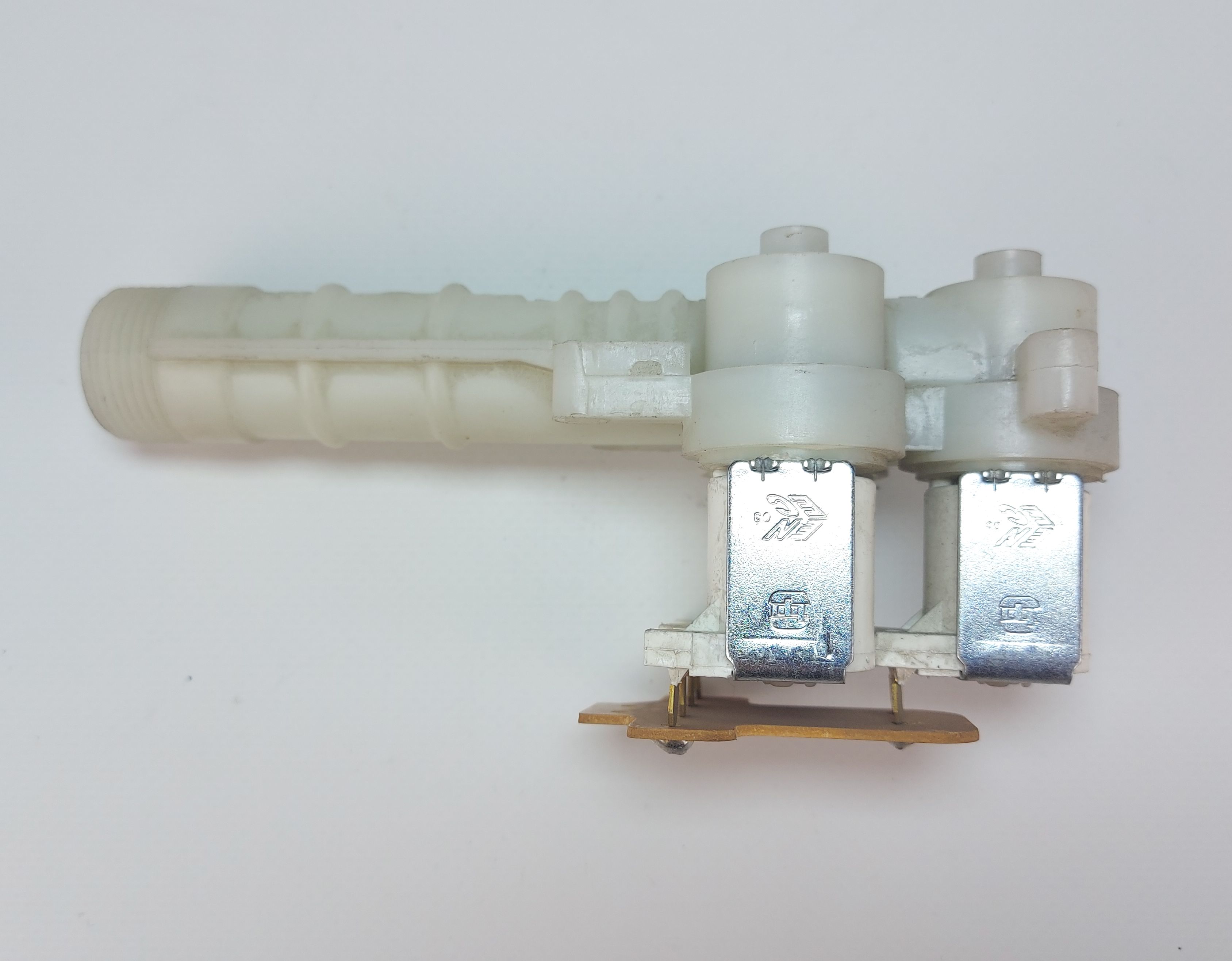 ОписаниеТрехходовой электромагнитный клапан КЭН-3 90° градусов для стиральной машины Electrolux (Электролюкс), Zanussi (Занусси).