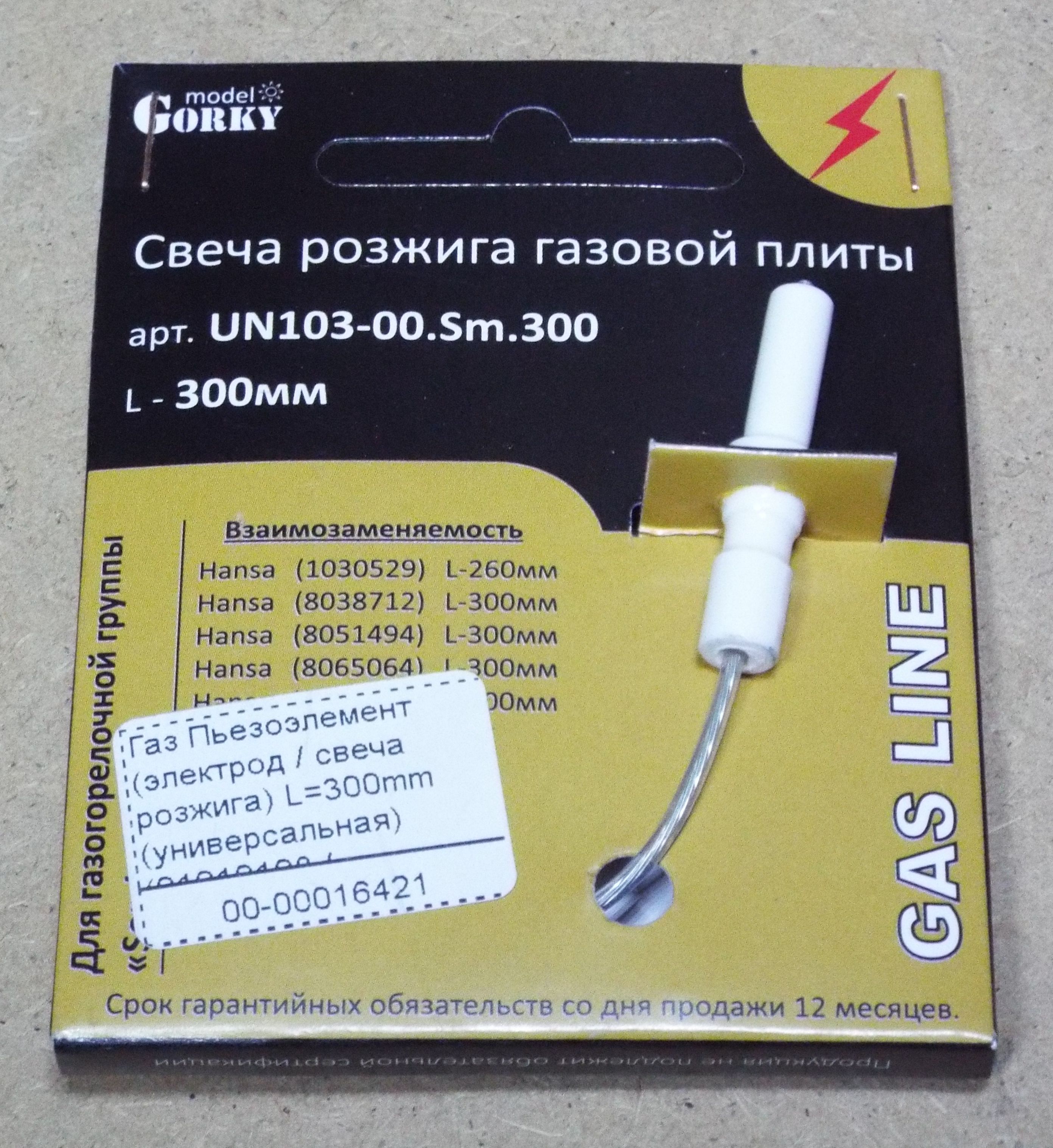 Свеча розжига (разрядник) L=300mm для газовой плиты HANSA (01010108 / UN103-00.Sm.300) № 00-00016421
