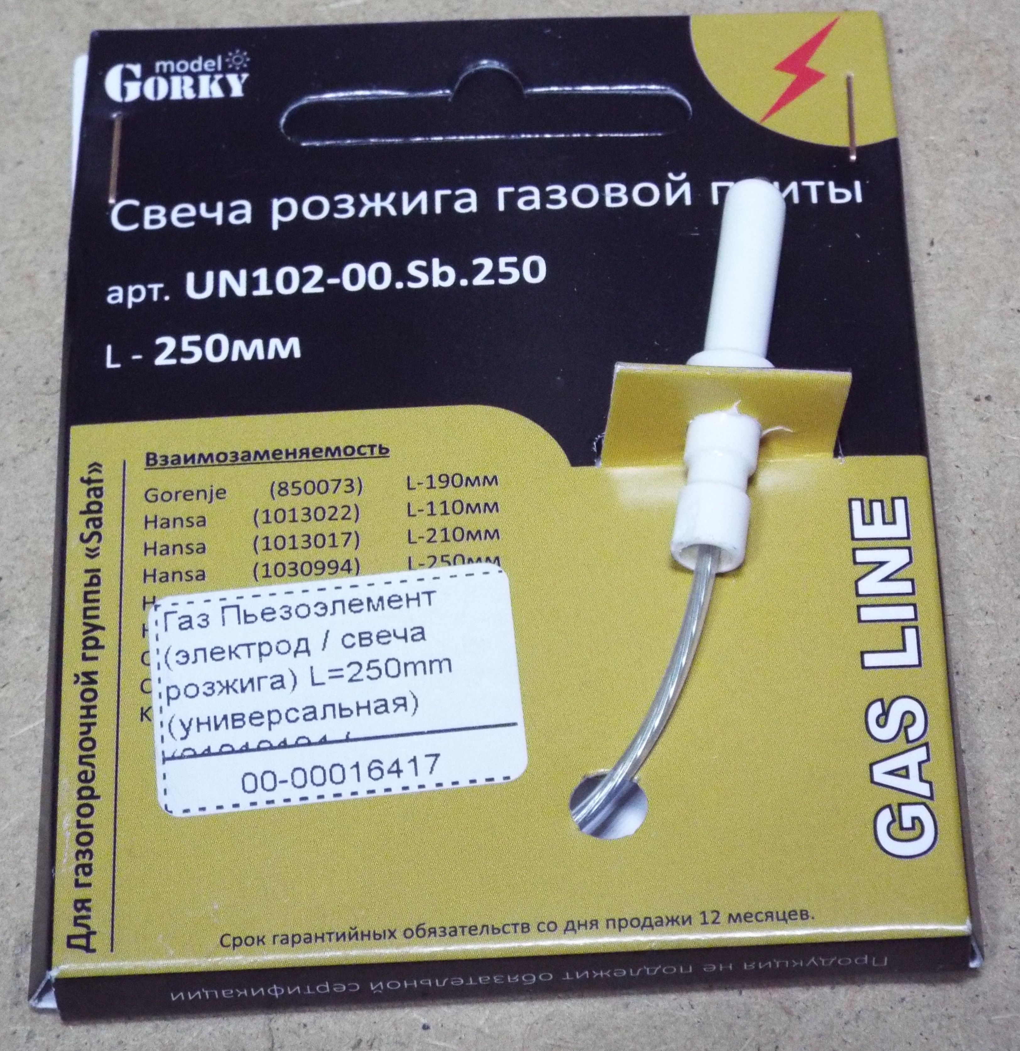 Свеча розжига (разрядник) L=600mm для газовой плиты HANSA (01010109 / UN103-01.Sm.600) № 00-00016422