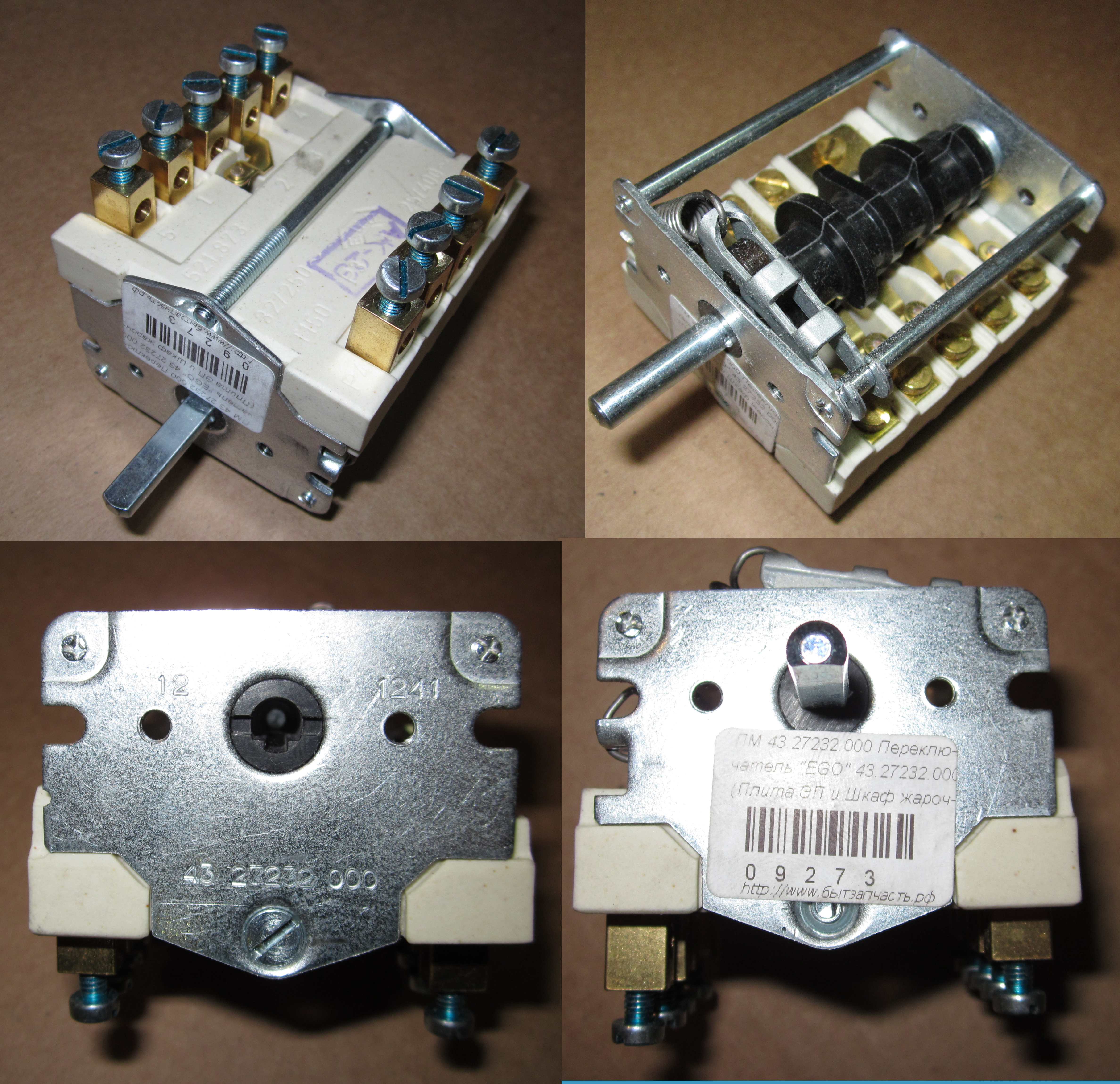 Ампер (A ) 32А # хештеги #Переключатель_43_27232_000 #АбатОборудование #EGO4327232000 #КерамическийПереключатель #Переключательрежимов_32Ампер Бренды: Нет бренда Вес с упаковкой (в г.) 350 Вес с упаковкой (в КГ.) 0.35 ШтрихКод 2000000013244 Производитель Универсальные Длина упаковки в Сантиметрах (СМ.) 10 Высота (в см. ) 5.5 Где применяется Духовка / жарочный шкаф Наименование 60зн. Переключатель 7позиционный 43.27232.000 Abat с сигн. конт. Подробное описание: Переключатель 7позиционный 43.27232.000 Abat взаимозаменяемый (00000009273). С дополнительными контактами под сигнальную лампу. Применяется для электрических плит ЭП и жарочных шкафов ШЖЭ с конвекцией АБАТ (Чувашторгтехника). Качественная альтернатива переключателя EGO 43.27232.000. Признаки неисправности переключателя: 1. Конфорка или духовка греет не на всех режимах или не включается совсем. 2. При включении конфорки выбивает пробки (УЗО). Для точной диагностики и ремонта обратитесь к квалифицированному специалисту. Характеристики переключателя: • Тип: поворотный переключатель (7ми-шаговый). • Надписи на корпусе: 43.27232.000; • Длина штока : 23 мм; • Форма штока: стальной / полумесяц 6 х 4,6 мм; • Соединения с электрической схемой: производится под винт; • Количество позиций: 7-ми позиционный (6 рабочих (для разных режимов) и 1 нулевую (отключение)). Последовательность переключения: 0-1-2-3-4-5-6; • Функция: 1NО / 2CO; • Номинальное напряжение переменного тока частоты 50Гц /60Гц: 220/250 вольт; • Номин Высота упаковки (в мм.) 60 Диаметр штока 6 мм. Цвет: Белый Ширина упаковки в Сантиметрах (СМ.) 10 Код производителя: 43.27232.000 Количество положений 07 Длина (в см. ) 9 Длина упаковки (в мм.) 100 Запчасть : Переключатель, Кнопка КС переключатель для электрических плит ЭП; переключатель жарочных шкафов ШЖЭ с конвекцией АБАТ; переключатель EGO 43.27232.000; переключатель духовки ПМ7 32А/250В; переключатель режимов для духовки EGO 43.27232.000; EGO 43.27232.000 7-позиционный аналог Материал: Металл + керамика Страна-изготовитель: Китай Применяется в: Плиты электрические Ток (Вольт: В / V) 220-250 Форма штока Полумесяц Частота тока (Гц / f ) 50 Hz / 60 Hz Ширина (в см. ) 6 Ширина упаковки (в мм.) 100 ОтзывыНаличие2/1 (Магазин Пушкина 49) (656043 ,РОССИЯ ,Алтайский ,Барнаул ,Пушкина ,49 ,) тел: +79039476307график работы: Понедельник - Пятница: с 9-00 до 18-00. Суббота - Воскресенье: с 10-00 до 17-00. без обеда, без выходныхНет в наличии3 (Малахова 164) (РОССИЯ ,) тел: +79646032562график работы: Понедельник - Пятница: с 10-00 до 19-00. Суббота: с 10-00 до 18-00. Воскресенье: с 10-00 до 17-00. без обеда, без выходных.Нет в наличии5 Попова 64(ТЦ Раздолье) (656062 ,РОССИЯ ,Барнаул ,Попова ,64 ,) тел: +79132101541график работы: Понедельник - Пятница: с 10-00 до 19-00. Суббота - Воскресенье: с 10-00 до 17-00. без обеда, без выходных.Нет в наличии6 (Бийск основной) (РОССИЯ ,) тел: +79635096161график работы: Понедельник - Суббота: с 9-00 до 18-00. Воскресенье: 10-00 до 17-00. без обеда, без выходныхМало8/1 ТЦ КВАДРО Новоалтайск (Магазин) (658080 ,РОССИЯ ,Алтайский ,Новоалтайск ,8 микрорайон ,29 ,) тел: +7-963-573-78-83график работы: Понедельник - Пятница 10:00-19:00, выходные 10:00-17:00Нет в наличии8/2ТЦ КВАДРО Новоалтайск (Склад) (658080 ,РОССИЯ ,Алтайский ,Новоалтайск ,8 микрорайон ,29 ,) тел: +7-963-573-78-83график работы: Понедельник - Пятница 10:00-19:00, выходные 10:00-17:00Нет в наличииСклад Северный Власихинский 6(Основной) (РОССИЯ ,) тел: +79039476307график работы: Время работы ИНТЕРНЕТ-МАГАЗИНА Понедельник - Пятница: с 9-00 до 18-00. Суббота - Воскресенье: выходной. Без обеда.Нет в наличии
